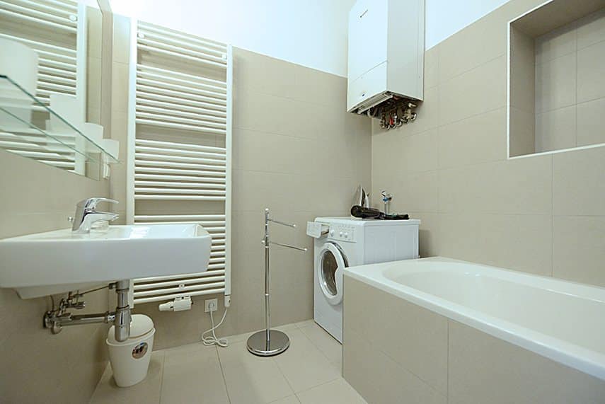 L'appartement moderne et entièrement meublé, d'une superficie de 48 m², comprend une chambre, une pièce à vivre, une cuisine entièrement équipée, une entrée, une salle de bains (baignoire et lave-linge) et un WC.