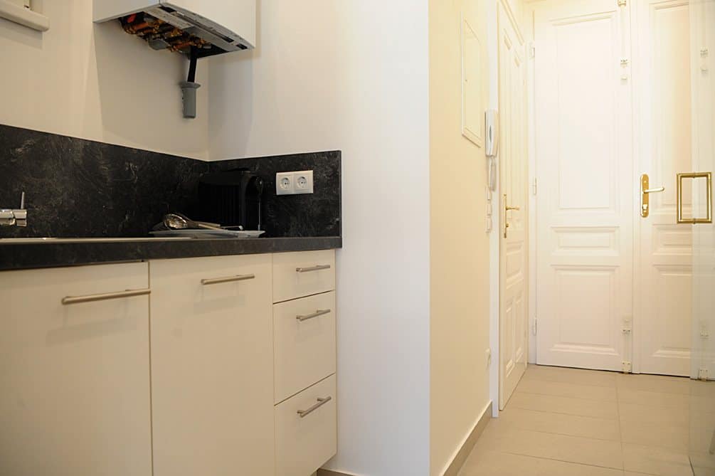L'appartement moderne et entièrement meublé, d'une superficie de 31 m², comprend une chambre-salon spacieuse, une cuisine entièrement équipée, une entrée et une salle de bains (douche, WC et lave-linge).