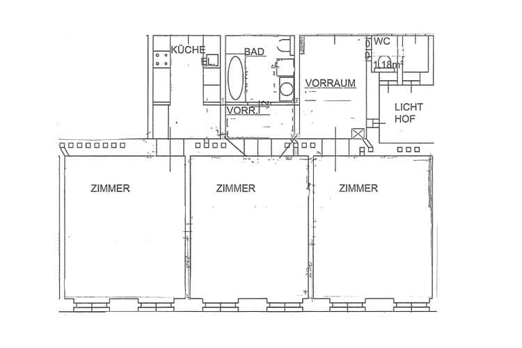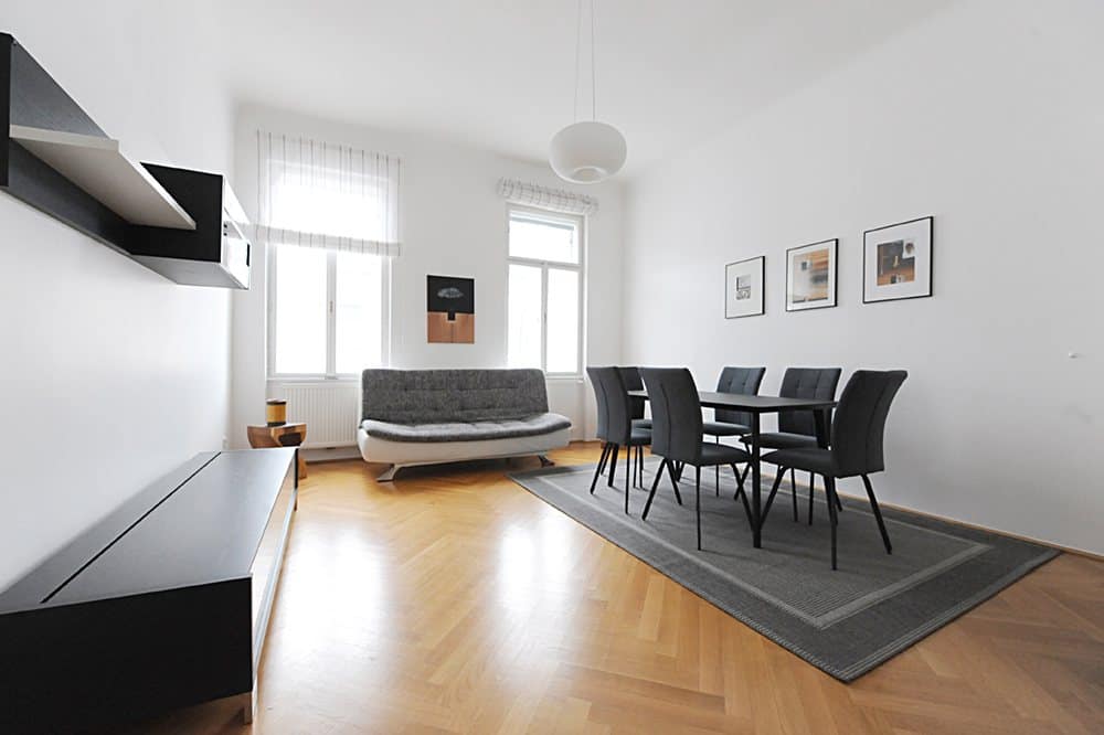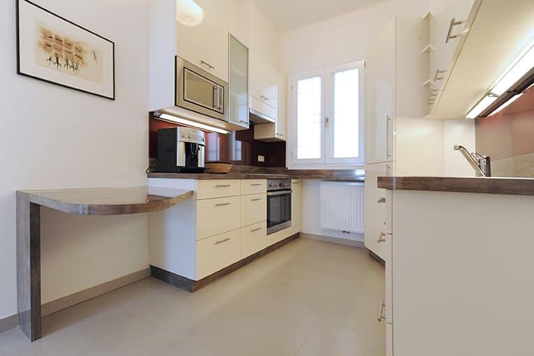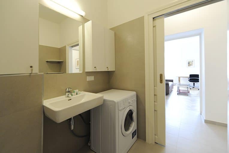 Questo appartamento moderno, completamente ammobiliato e grande 89 m², dispone di una camera da letto, due camere da letto abitabili spaziose, una cucina completamente attrezzata, un disimpegno, un bagno (con vasca, WC, armadietti con serratura e lavatrice) e un WC. Tutte le camere sono accessibili dal disimpegno in posizione centrale. Ecco perché, l’appartamento risulta perfetto anche per coabitazione o appartamento destinato a collaboratori.